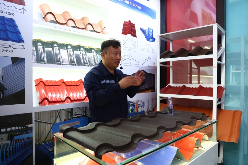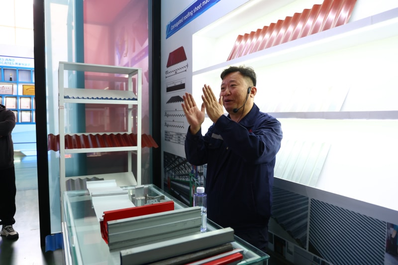 接下來,徐總主要介紹公司的核心產(chǎn)品系列,包括屋面瓦成型機、CZ型鋼機、輕鋼龍骨機等。