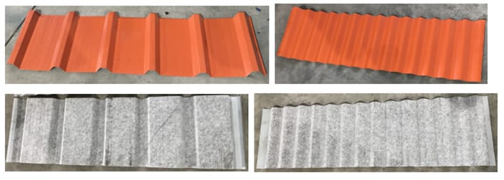 瓦片的類型可以根據(jù)客戶的需求進(jìn)行定制。除了市面上常見的彩鋼材料外,該設(shè)備也適用于本公司自己研發(fā)的熱覆膜材料。
