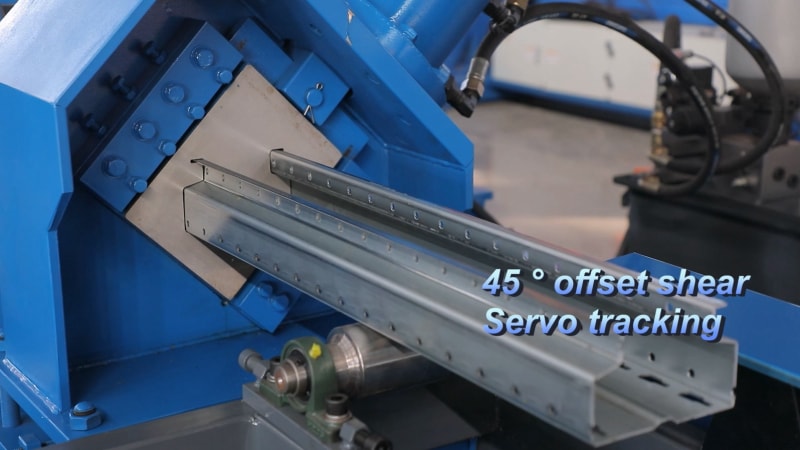 該設(shè)備采用PLC 控制系統(tǒng)和液壓剪切設(shè)備,可以對立柱進行定長剪切,同時保證成品的切口平整美觀。