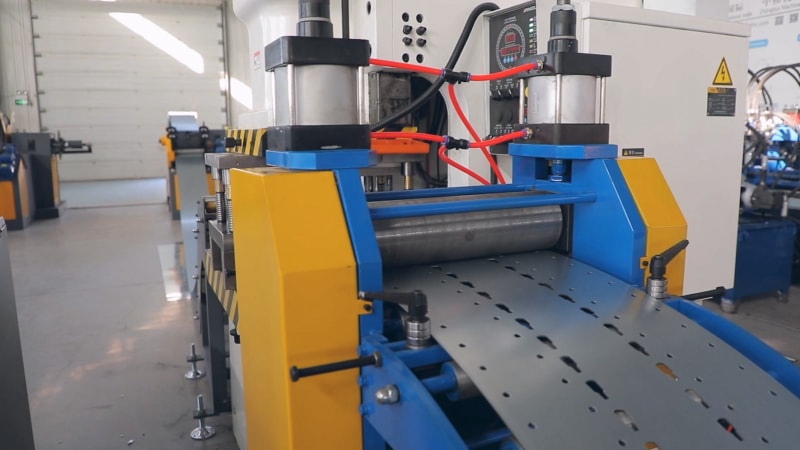 該套貨架立柱系統(tǒng)設(shè)備包含整套立柱生產(chǎn)線,包括開卷機、液壓沖孔機、貨架立柱成型機、收料臺等部分,可以通過參數(shù)設(shè)置,生產(chǎn)不同尺寸的貨架立柱。