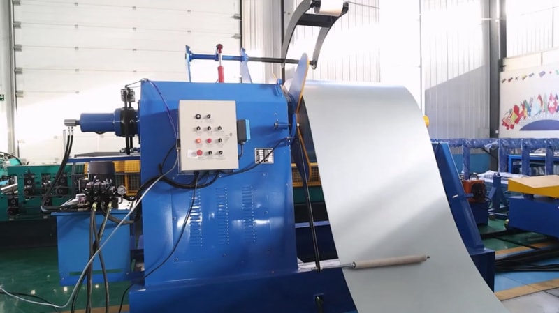 在樓承板機(jī)的工作流程中,開卷機(jī)扮演著重要角色。它負(fù)責(zé)將原料鋼卷自動開卷并供料,確保生產(chǎn)過程的連續(xù)性和穩(wěn)定性。中拓的開卷機(jī)具有自動啟停功能,能根據(jù)實(shí)際需求調(diào)節(jié)進(jìn)料方向(左進(jìn)料或右進(jìn)料),大大提高了操作的靈活性。