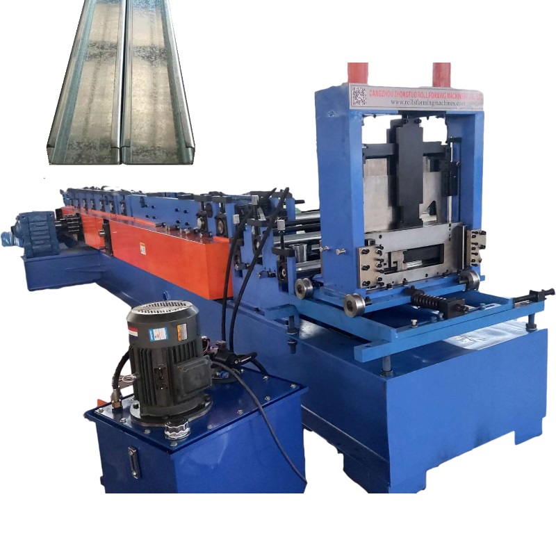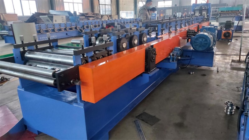 此C型鋼成型機,從入料到成型到切割全部采用自動換型,實現(xiàn)一機輕易生產(chǎn)多型號C型鋼的目的,銷售到歐美等國家。