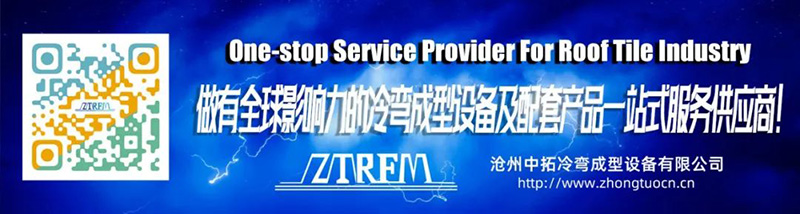 中拓冷彎成型設(shè)備是中國(guó)先進(jìn)的卷材處理設(shè)備品牌之一,成立于2006年。我們的使命是為客戶(hù)提供金屬輥軋解決方案和售后服務(wù)。我們的機(jī)器提供多種卷材送料設(shè)備,包括開(kāi)卷機(jī),矯直機(jī),送料機(jī)以及自動(dòng)輥壓成型機(jī)。例如:彩鋼屋面瓦機(jī),檁條成型機(jī),熱覆膜成型機(jī)等??梢愿{效,更準(zhǔn)確地執(zhí)行金屬加工,提高可靠性,減少浪費(fèi),提高生產(chǎn)效率。